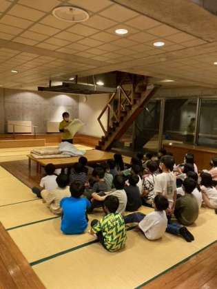 布団の敷き方や片付け方を補助員さんから教えてもらいました。補助員さんは、キャンプファイヤーやって、休む暇もなく布団の準備です。本当に頭が下がります。?