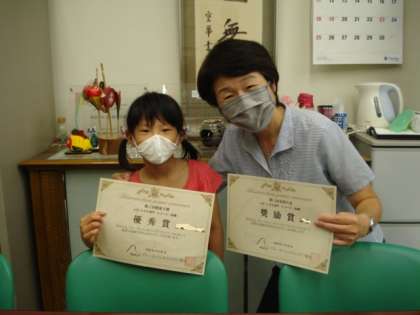 1年生の児童が、ピアノで表彰されたと報告に来てくれました。関東大会の予選を通過し、全国大会で奨励賞をいただいたとのこと。素晴らしいです。校長室で記念撮影しました。