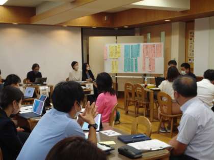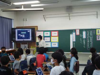 80周年のポスターにつけるキャッチコピーを考える学習でした。ロイロノートのシンキングツールを使って、班の仲間の意見を分類整理している様子をみて、タブレットを使いこなしているなと思いました。また、子どもたちのポスターからは、弦巻小学校に対する深い愛情を感じました。