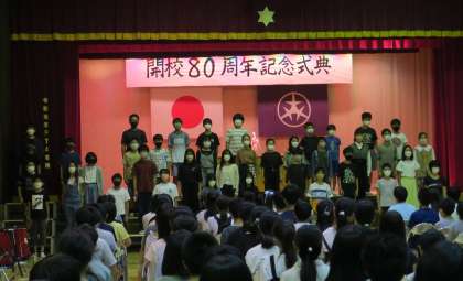 6年生からは、弦巻小学校の歴史紹介と群読、合奏、合唱の発表がありました。