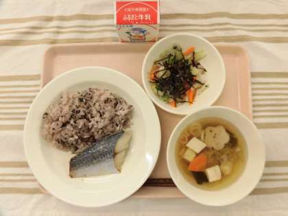 赤飯 鰆の塩こうじ焼き すまし汁 磯和え 牛乳