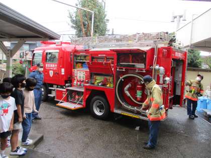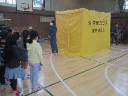 3年生は、世田谷消防署の方から、ポンプ車の見学を始め、119番のかけ方、煙体験、消火器訓練をしていただきました。