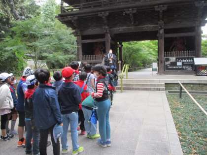 キャロットタワーの26階から町の様子を展望しました。次に九品仏浄真寺に行き、住職の方から建物や仏像についてのお話を伺いました。
