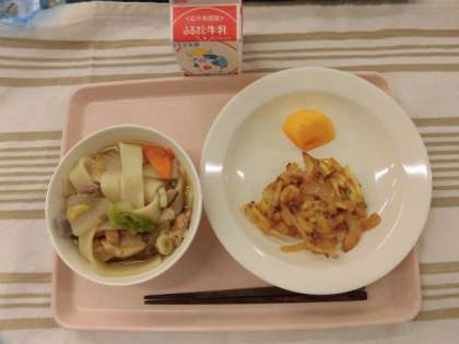 群馬県のおっきりこみ風 かき揚げ 柿 牛乳
