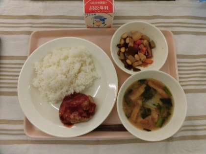 ごはん 豆腐ハンバーグ かぶのみそ汁 五目豆 牛乳