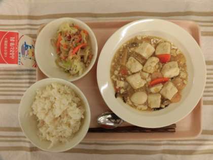 胚芽米ごはん 豆腐の五目炒め キャベツともやしのごまだれ 牛乳