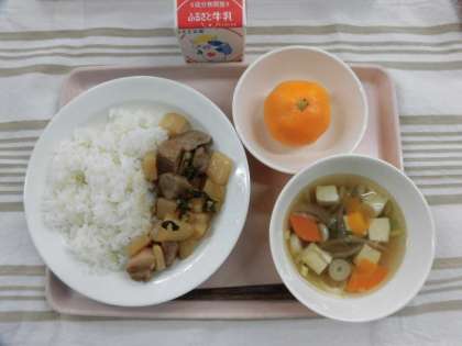 ごはん 大根と豚肉の角煮 五目汁 みかん 牛乳