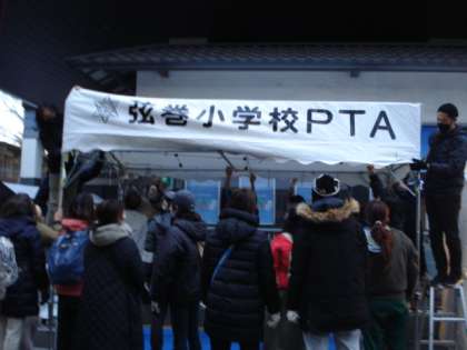 3年ぶりのボロ市。早朝から、PTAと教職員でテントを立て、準備をしました。今日は、校庭で花火が上がったり、代官行列が来たり、子供たちにとっては驚きの一日になるでしょう。