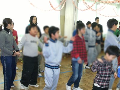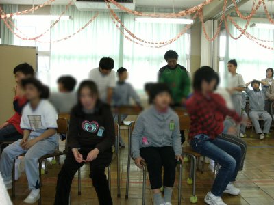 歌を歌ったり、ゲームをしたり、中学生の出し物を見たりして