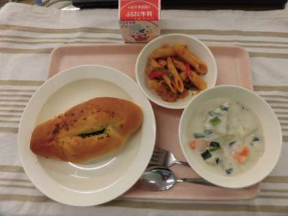 ガーリックトースト 大根のクリームシチュー ペンネソテー 牛乳