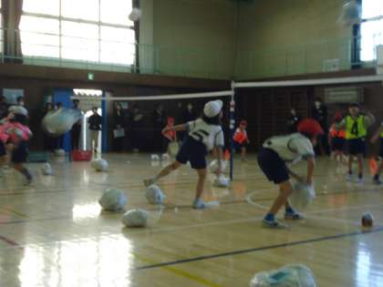 教師道場2年目の発表が1年4組の学級で行われました。「どんどんおとそう!ゆき玉ゴー!」の授業は、子供たちが夢中になってゲームを楽しみ姿が見られました。