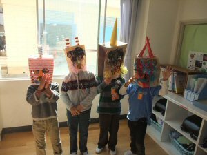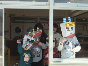6組では、節分の豆まきをしました。出ていってほしい鬼は、