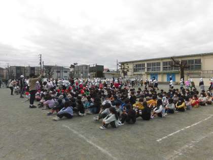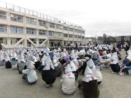 児童が校舎や校庭など様々な場所にいる場合の避難訓練でした。