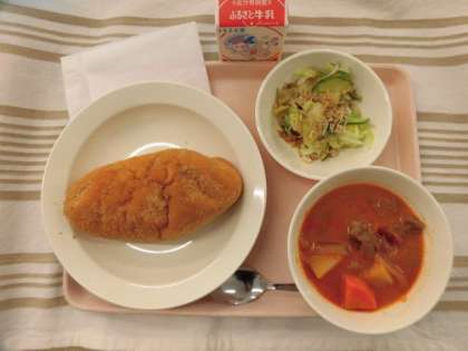 きなこ揚げパン ボルシチ じゃこサラダ 牛乳
