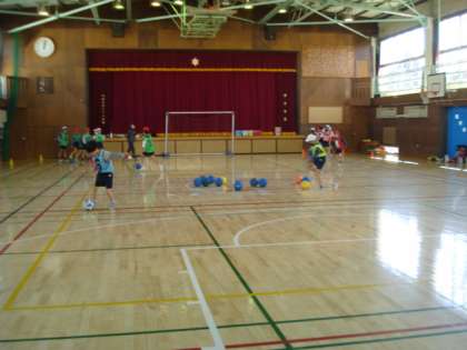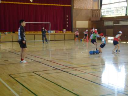 体育館では、3年生がフットサルをしていました。選手の方々が楽しいゲームを教えてくださいました。とても盛り上がっていました。