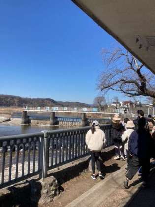 取水堰です。教科書の写真で見るのと実物と比べてどうかな。