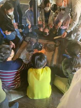 資料館でお勉強です。古民家で囲炉裏体験。なんだか落ち着きます。