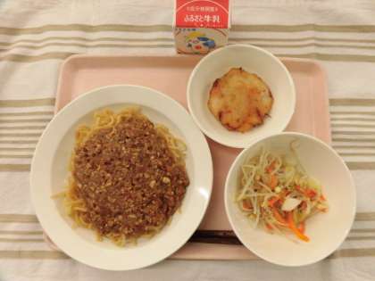 ジャージャー麺 大根もち 大豆もやしのなむる 牛乳
