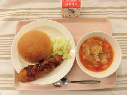 セルフフィッシュバーガー(丸パン 鮭フライ ボイルキャベツ)