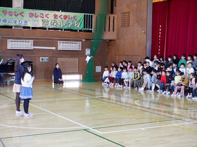 1年生の歌の発表は、かわいく元気な1年生の歌声に大きな拍手が沸き起こりました。