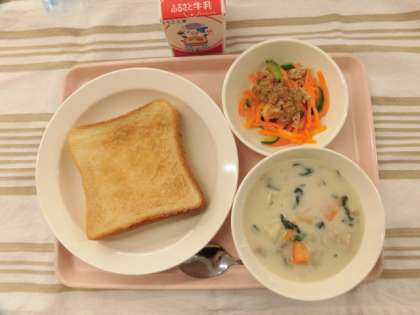 シナモントースト ホワイトシチュー にんじんのラペ 牛乳