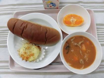 黒砂糖パン じゃが芋のチーズ焼き 米粉のポークシチュー 南津海(なつみ) 牛乳