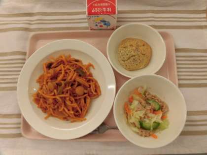 スパゲッティナポリタン ツナサラダ 紅茶のスコーン 牛乳