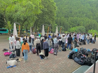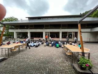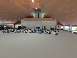 今、村の会堂で布団の取り扱いなどを教えていただいています。天気は曇りです。