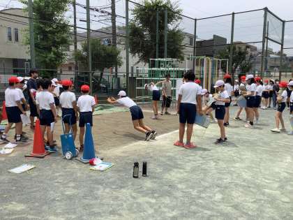 校庭では、ソフトボール投げ、立ち幅跳びを