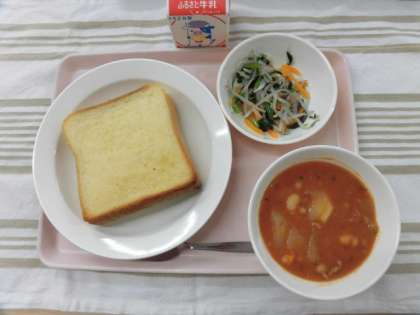 はちみつレモントースト ビーンズシチュー もやしのサラダ 牛乳