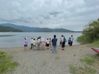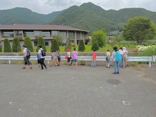 避難訓練、開園式を終えて、湖畔の散策に出かけました。みんな元気です。