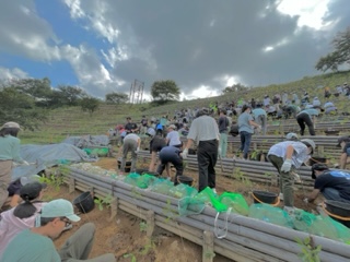 係の方から説明を受け、1人1本ずつ丁寧に植えました。