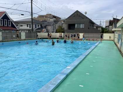 水分補給や休息を取りながら、2学期の水泳記録会に向けて泳ぎの練習を頑張りました。