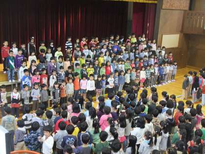 みんなで“ともだちになるために”の合唱。最後に1年生からよびかけと“さんぽ”の歌のお礼がありました。大きな声で元気よく歌っていました。