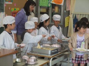 小学校で初めての給食の日でした。今日のメニューは、