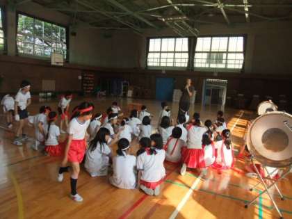 応援団の子どもたちが練習をしています。みんな運動会に向けて