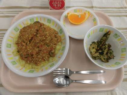 ドライカレーライス 青のりフライドポテト デコポン 牛乳