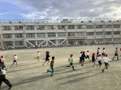 1月から2月中旬にかけて、朝の時間に体育朝会(持久走)がありました。