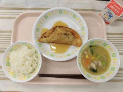 ごはん ジャンボぎょうざの甘酢あんかけ 中華風コーンスープ 牛乳