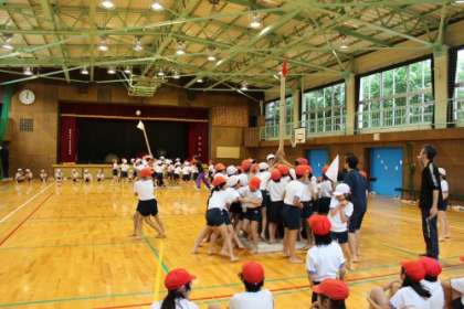 体育館も有効に活用しています。1時間目と3時間目は6年生が