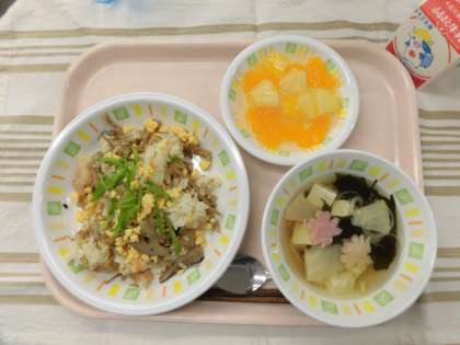 ちらし寿司 たけのことわかめのすまし汁 フルーツポンチ 牛乳