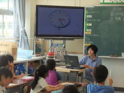 時刻の学習でした。時計と数直線を使いながら学習を進めていました。