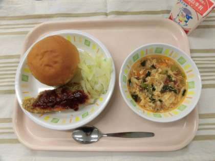 セルフフィッシュバーガー(無塩丸パン フィッシュフライ ボイルキャベツ) アクアコッタ 牛乳