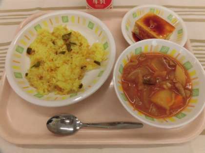 ツナカレーピラフ ポテトオムレツ 米粉のポークシチュー 牛乳