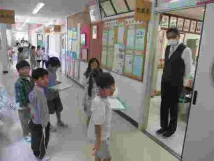 今日の2,3時間目に1,2年生が学校探検を行いました。