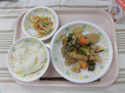 ごはん 五月煮 カリカリ油揚げのサラダ 牛乳