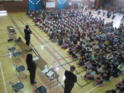 2時間目は1〜3年と六組、3時間目は4〜6年生がセーフティ教室を行いました。