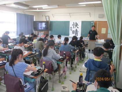 6年生は国語の学習や書写、音楽の学習をしていました。