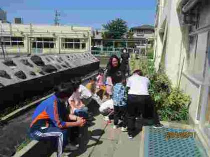 6組の皆さんは職員室前に植えてあるソラマメを収穫し調理実習をしました。