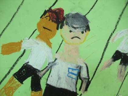 先日行われた運動会の思い出を1年生がさっそく絵にしてくれました。